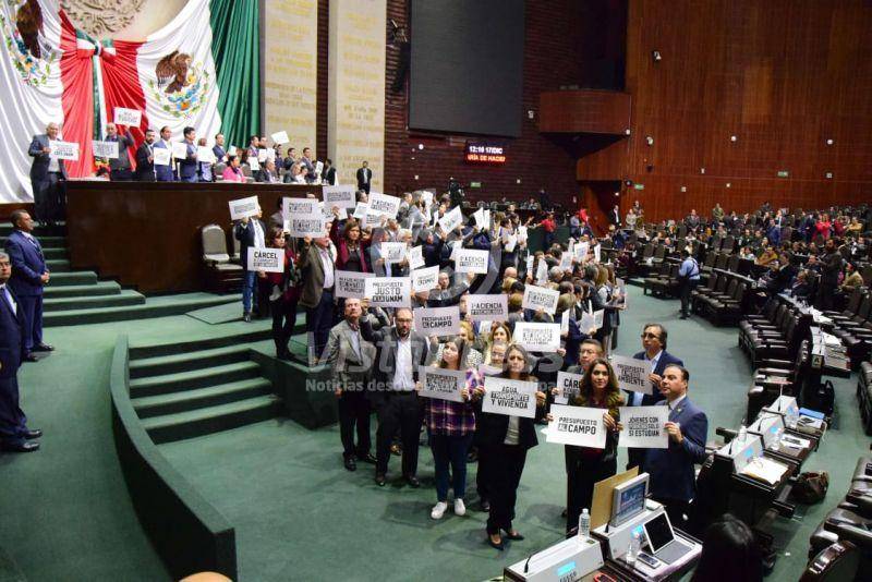 Panuco, Ver.- Durante la comparecencia del titular de la Secretaría de Hacienda y Crédito Público, Carlos Urzúa Macías, los integrantes del Grupo Parlamentario del PAN, protestaron contra el recorte a temas fundamentales para el desarrollo del país, dentro del Proyecto de Presupuesto Económico Federal 2019.