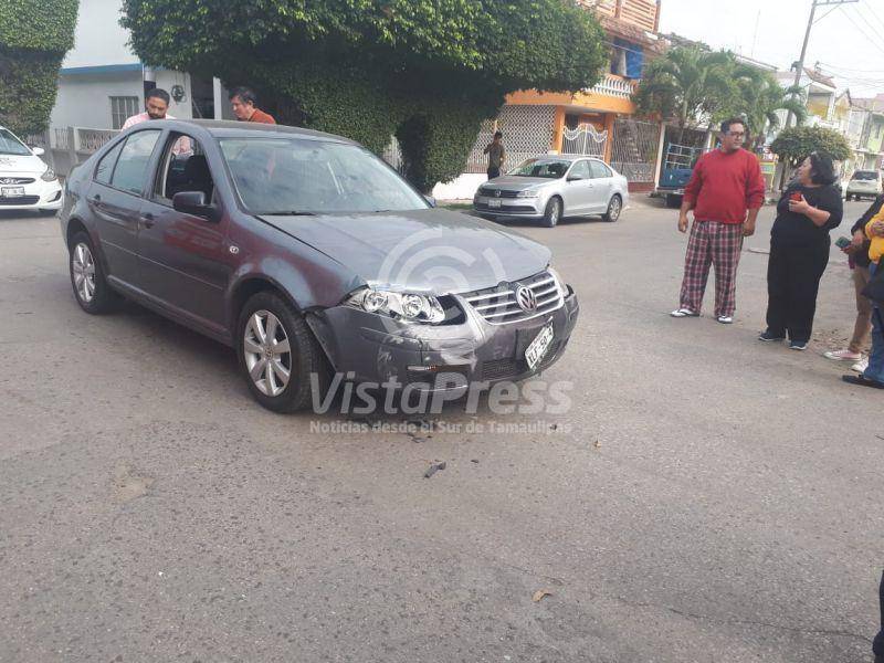 Madero, Tam.- Fuerte choque se registró la tarde de este viernes en transitado crucero en donde una de las unidades terminó impactándose en la barda de un domicilio.