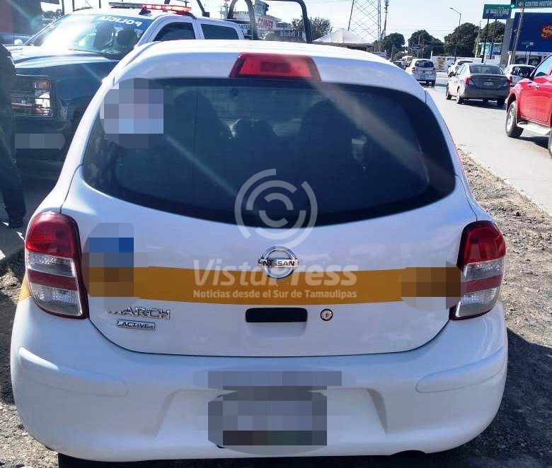 Alrededor de las 14:30 horas, los efectivos estatales acudieron al llamado de una denuncia ciudadana al 9-1-1 que informaba el robo de un automóvil Nissan March con placas de Tamaulipas habilitado como Taxi.