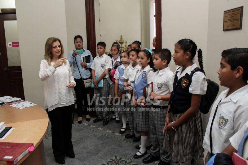 Tampico, Tam.- Alumnos de la escuela Primaria “Álvaro Gálvez y Fuentes” de la colonia Niños Héroes integrantes de la Red de Niñas y Niños Difusores de Tampico 2019, efectuaron una visita a las instalaciones del sistema DIF municipal, donde fueron recibidos por la Presidenta del organismo, Aida Feres de Nader, con quien sostuvieron un diálogo acerca de las acciones que realizan en su institución educativa.