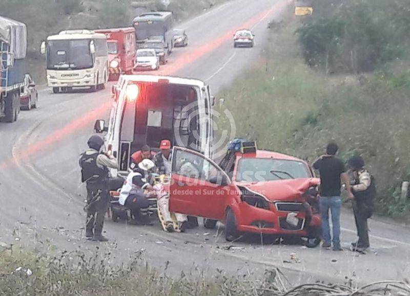 Al punto arribaron paramédicos de Cruz Roja y del grupo Sirena, quienes prestaron el auxilio a fin de trasladar a bordo de las ambulancias, al bebé lesionado y el chofer del Aveo.