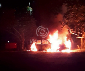 Tempoal, Ver.- Sin conocer las causas reales de la conflagración un automóvil habilitado en su modalidad de taxi quedó completamente calcinado.