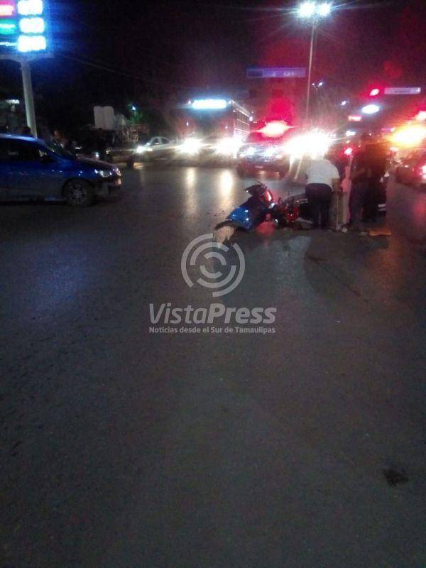 Altamira, Tam. Un motociclista empleado de una farmacia fue brutalmente arrollado en el centro de la ciudad, por lo que tuvo que ser atendido por paramédicos de la Cruz Roja sin necesidad de ser trasladado a un hospital pese al fuerte impacto.