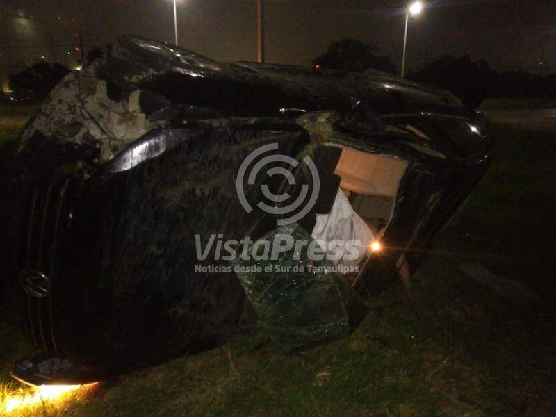 Altamira, Tam.- Un hombre pereció en el interior de su automóvil, luego de volcar en una curva del bulevar de los Ríos, frente al Tecnológico de Monterrey.