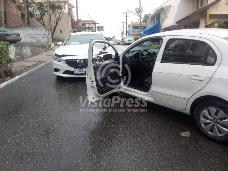 Tampico, Tam.- Fuerte choque de frente se registró entre dos vehículos la tarde de este lunes, en donde una mujer perdió el control del volante derrapando e impactando al vehículo al otro carro que era conducido en el carril opuesto.