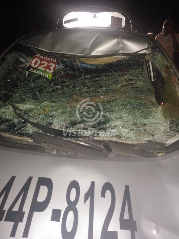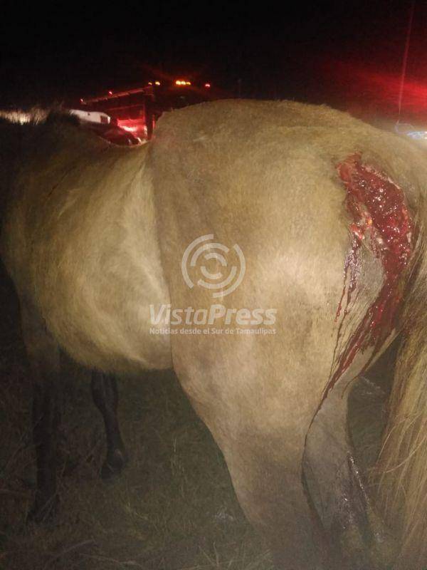 Altamira, Tam.- Un vehículo compacto de servicio de transporte se impactó en contra de un caballo en donde resultó la pasajera lesionada teniendo que ser trasladada a un hospital de la zona.