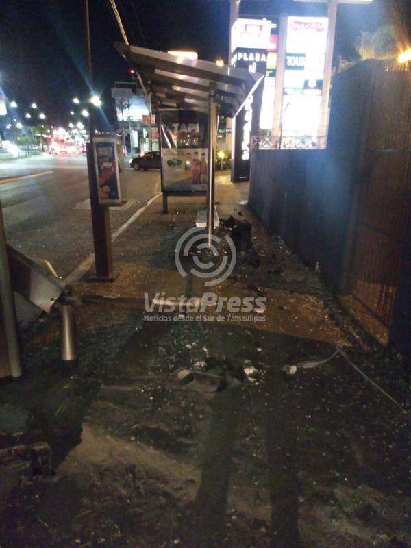 Tampico, Tam.- Un vehículo no identificado tumbó un parabús instalado frente a la colonia Del Charro, sin que se lograra dar con su paradero.