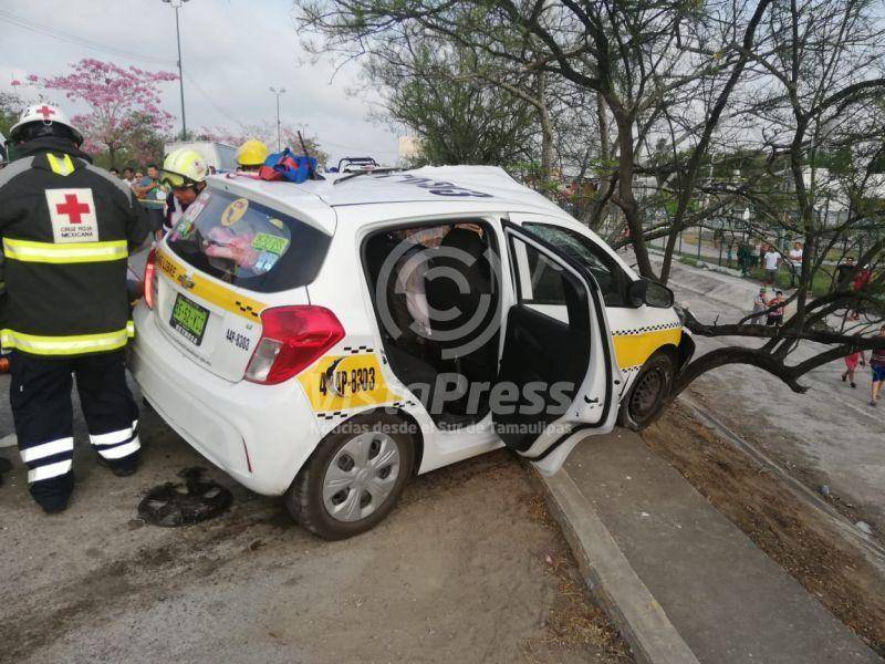 Tampico, Tam.- Fuerte choque se registra la tarde de este lunes entre un taxi y un autobús de transporte de personal en donde tres personas de las cinco que viajaban en la frágil unidad pierden la vida.
