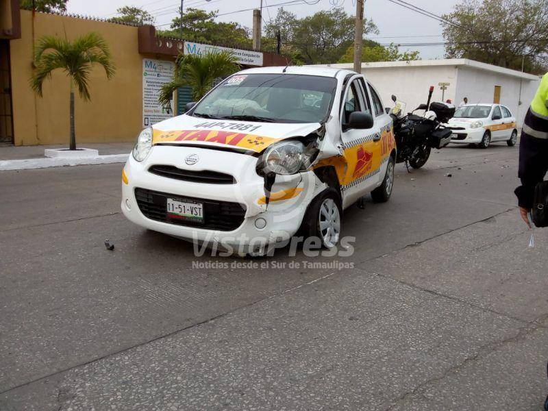 Tampico, TAM. Fuerte choque se registró la mañana de este miércoles en transitada vialidad de la zona norte de Tampico, en donde aparentemente un octogenario se pasó el alto, siendo impactado su vehículo por un taxi.