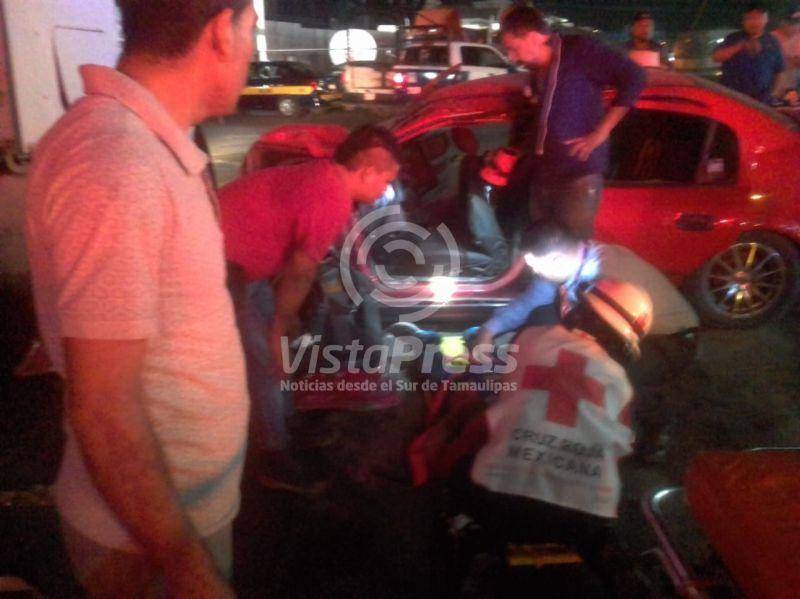 Altamira, TAM. Tres personas resultaron con fuertes lesiones al quedar prensados en el interior del vehículo compacto en el que se trasladaban luego de impactarse en contra de un tractocamión de una empresa refresquera que pretendía dar vuelta en «U» en el lugar conocido como la Y Griega.