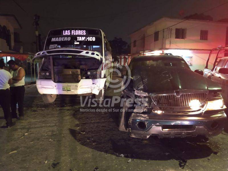 Se trata de un microbús de la ruta Tampico-Madero- Las Flores, mismo que su conductor omitió el alto, y con ello sobreviniendo el accidente en el que 10 pasajeros sufrieron de algunos golpes, motivo por el cual tuvo que hacerse presente la Cruz Roja de la localidad.