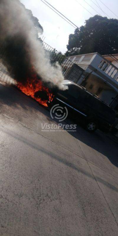 Madero, Tam. Una camioneta quedó reducida a cenizas la tarde de este sábado, luego de que se iniciara el incendio a causa de un corto circuito.