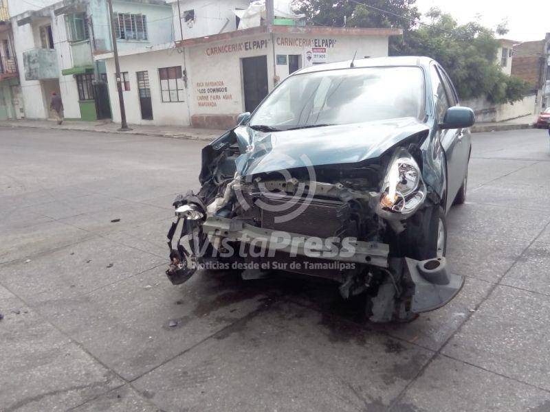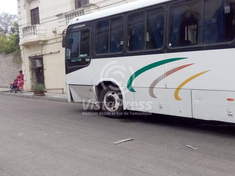 Tampico, Tam.- Un auto particular que no respetó una señal fija de»alto» chocó contra un autobús de pasajeros foráneo en calles de la zona centro de la ciudad.