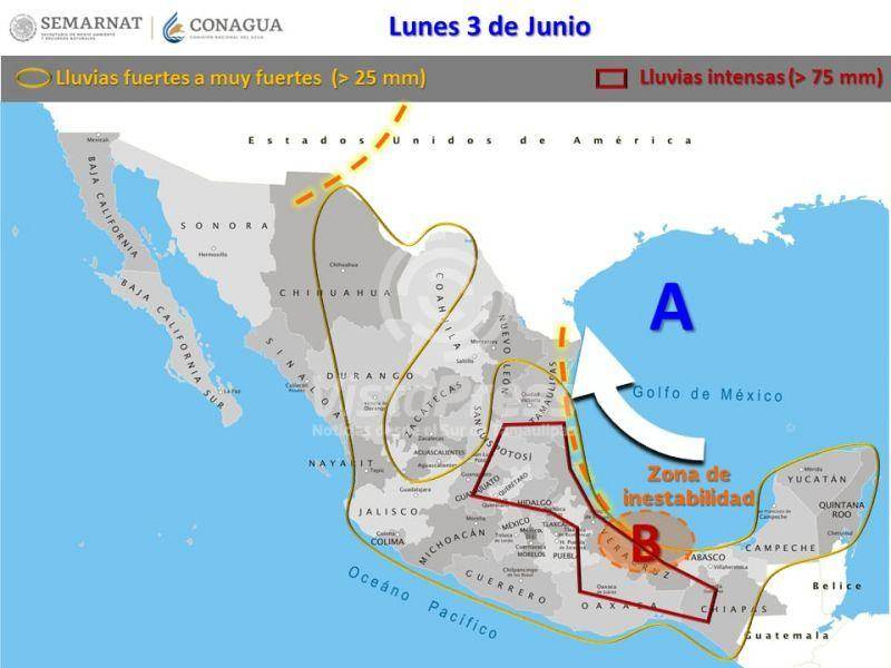 Zona Sur Tamaulipas. A partir de este día se pronostica el primer temporal de lluvias sobre la gran parte del país, con tormentas intensas a torrenciales en el oriente, sur y sureste del territorio nacional.