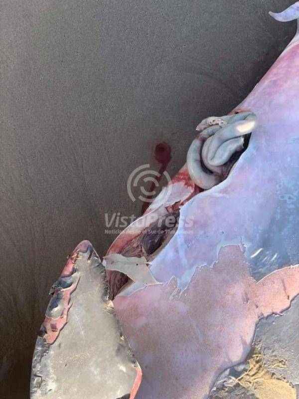 Madero, Tam. El cadáver de un delfín adulto fue localizado en la playa de Miramar la mañana de este sábado, desconociéndose las causas de su muerte. Tenía las vísceras por fuera.