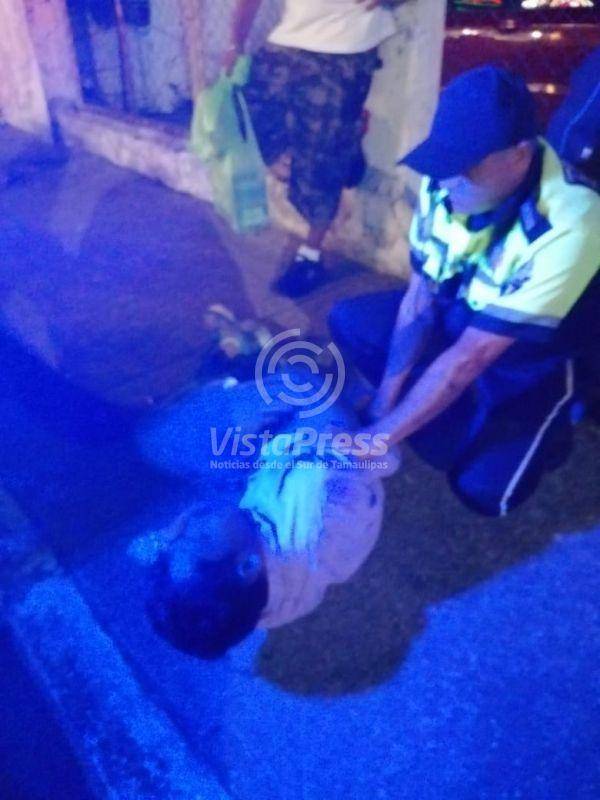 Esto ocurrió a las 21:20 horas en la calle Altamira en donde el afectado de nombre José Martín Reyes señaló que bajando del taxi donde viajaba, al pagarle al chófer, éste le aventó una bolsa en la cabeza y le quiso arebatar una maleta y dinero.