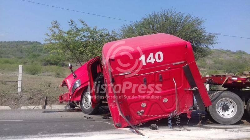 Altamira, Tam.- Fuerte choque entre dos tráiler se registró la tarde de este lunes en la carretera Tampico-Mante en donde uno de los conductores resultó con lesiones, además el vehículo responsable sufrió fuertes daños materiales.