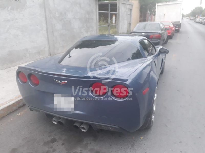 En el lugar encontraron un Chevrolet Corvet modelo 2012 color azul, procediendo a revisar las placas y número de serie en Plataforma México, resultando con reporte de robo por lo que se solicitó el servicio de grúa para su traslado.