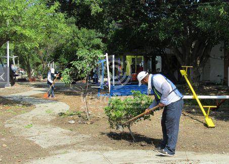 En seguimiento al programa integral, en un recorrido se verificó que personal de la Secretaría de Desarrollo y Medio Ambiente del Gobierno del Estado participa en esta labor en el área recreativa y de descanso ubicada en la esquina de la calle 18 de noviembre de 1913 y el bulevar Las Palmas.