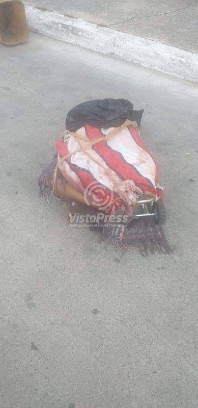 Tampico, Tam. Un nuevo crimen sembró de terror a la población del sur de Tamaulipas en donde una mujer aparece torturada y envuelta en cobijas sobre un diablito de carga.