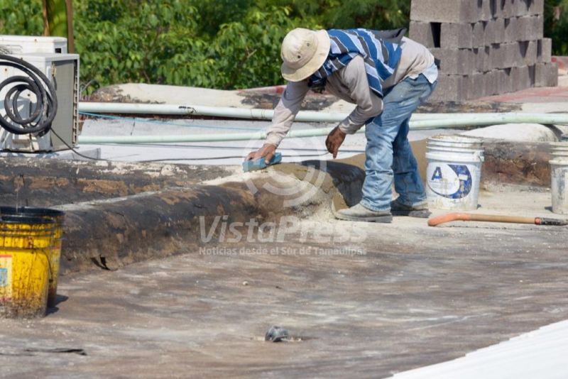 Los trabajos consisten en la impermeabilización de losa y rehabilitación de bajantes pluviales, los cuales presentan un avance del ochenta por ciento.