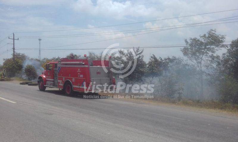 Fue la mañana de este lunes que los vulcanos acudieron al llamado que les hicieran a través del número de emergencias en donde les indicaban que en el acceso al referido fraccionamiento había un incendio, el cual se extendía hasta la carretera Tampico-Mante.