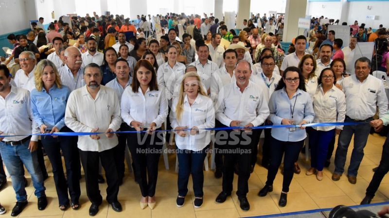 Altamira, Tam.- Como muestra del trabajo realizado por el Gobierno Municipal de Altamira para lograr mayores oportunidades que mejoren la calidad de vida de los ciudadanos, la alcaldesa Alma Laura Amparán Cruz, acompañada de la secretaria del Trabajo del Gobierno de Tamaulipas, María Estela Chavira Martínez, y el encargado de despacho de la oficina de representación territorial de la Secretaría del Trabajo y Previsión Social del Gobierno Federal, Iván Karim Rocha Picazo, así como autoridades estatales y representantes del sector empresarial, inauguró la Primera Feria de Empleo para Jóvenes Altamira 2019.
