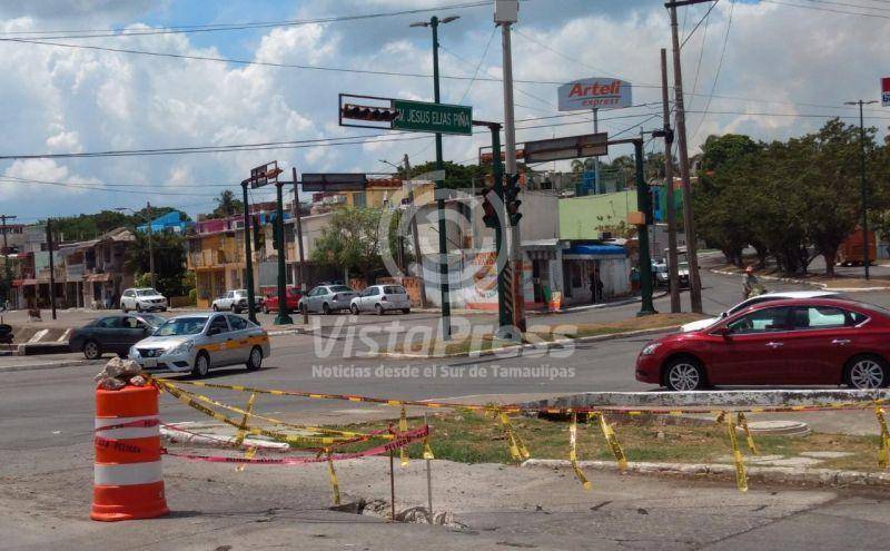 Tampico, Tam.- La poca lluvia que se dejó sentir en varias zonas de la conurbada fue factor para que se abriera un socavón en una transitada vialidad del norte de Tampico.