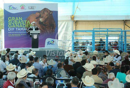 Ciudad Victoria, Tamaulipas.- En una acción que reafirma el trabajo conjunto entre los sectores productivos, el Gobierno y Sistema DIF, se llevó a cabo en el marco de la Feria Tamaulipas 2019, la Gran Subasta Ganadera en beneficio de los programas de asistencia social del Sistema para el Desarrollo Integral de la Familia en la entidad.