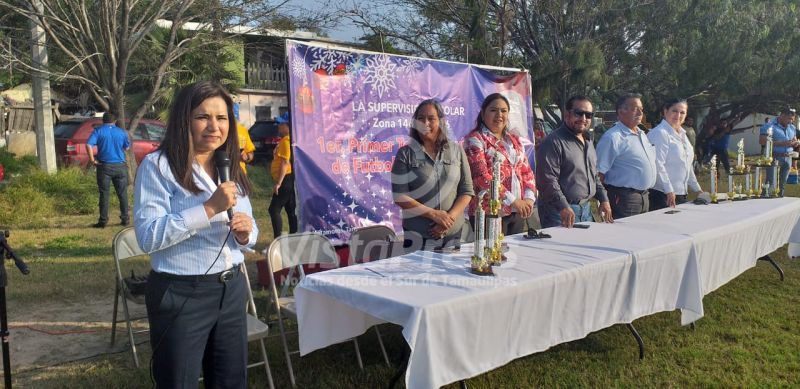 Matamoros, Tam.- Con la participación de 20 equipos, la Diputada Local, Ivett Bermea Vázquez, este viernes inauguró el Primer Torneo Navideño de Fútbol, mismo que organizó la Supervisión Escolar número 146 y que dirige el profesor Andrés Andrade Márquez.