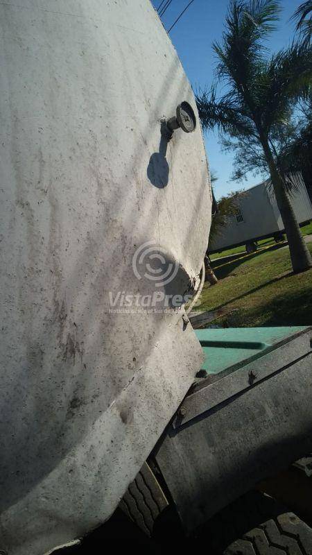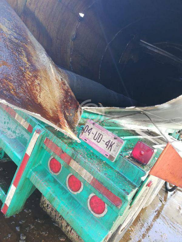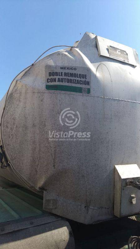 De acuerdo a lo informado, se trata de una tráiler con doble acoplamiento de pipa, propiedad de la empresa Transportes Polanco.