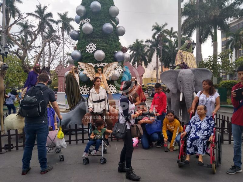 Acompañados de familiares tampiqueños los turistas se tomaron la foto del recuerdo en el pino navideño y el nacimiento monumental para dirigirse luego a otros puntos de Tampico.