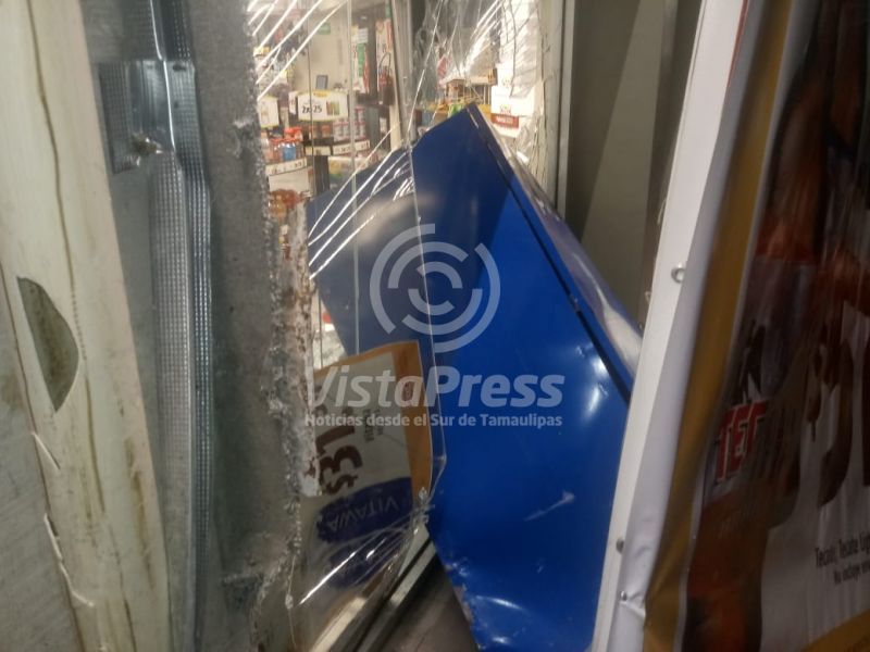 Tampico, Tam.- Un vehículo ocasionó severos daños a una tienda de conveniencia la madrugada de este sábado, luego de que su conductor intentara estacionarse, pero equivocó aparentemente el freno con el acelerador.