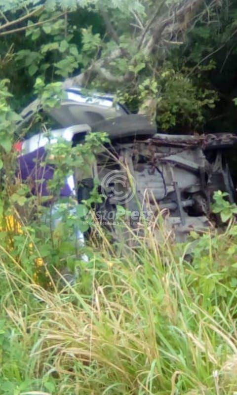 Se trata de una camioneta Toyota Avanza en color gris, misma que era conducida a velocidad inmoderada por lo cual, la conductora pierde el control del volante al tomar una curva pronunciada.