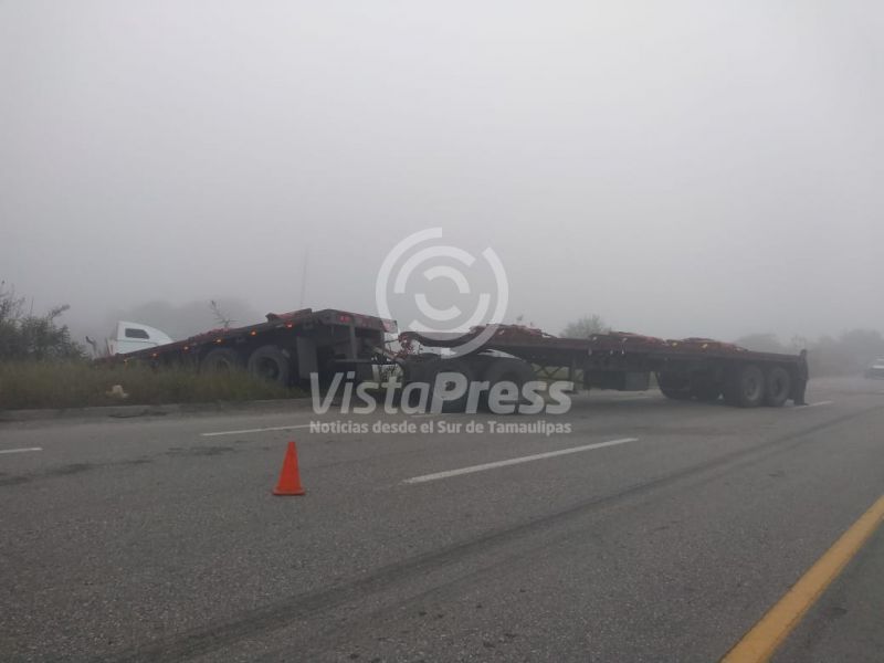 En ese punto volcó el tráiler de la marca Freightliner color blanco, el cual jalaba dos plataformas vacías y era conducido por quien se identificó como Norberto Padilla.