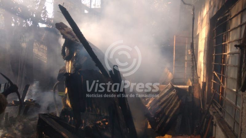 Madero, Tam.- Parte de una vivienda quedó reducida a cenizas tras iniciarse un incendio a causa de la quema de basura en un terreno contiguo; las pérdidas fue total.
