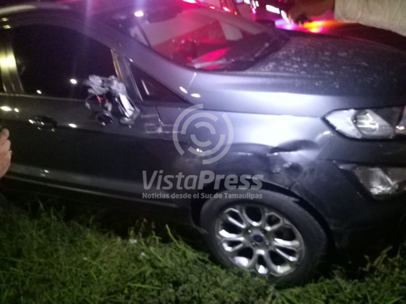 Se trató de una camioneta Toyota Rav en color gris, misma que resultó con daños en el costado izquierdo al ser impactada y proyectada hacia los matorrales.