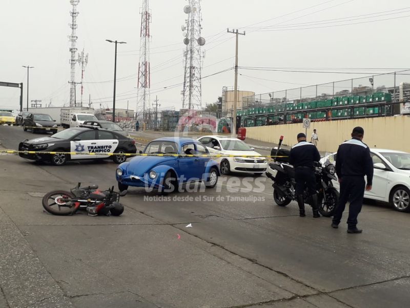 Tampico, Tam.- Un motociclista y su acompañante resultaron lesionados tras ser embestidos por un vehículo compacto que diera una vuelta en “U” sin tomar las medidas de precaución, esto en la zona Dorada.