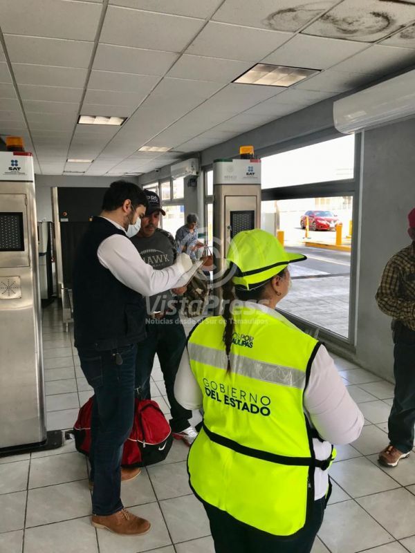 El personal responsable de los filtros, distribuye también información sobre las fuentes oficiales autorizadas para emitir actualizaciones con relación a los casos del coronavirus, así como detalles de contacto con las autoridades de Tamaulipas.
