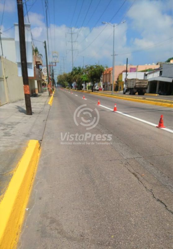 Personal de la Dirección de Tránsito y Vialidad continúa con los trabajos de pintado de líneas y mantenimiento de las principales avenidas de Ciudad Madero, garantizando así la circulación correcta de los automovilistas.
