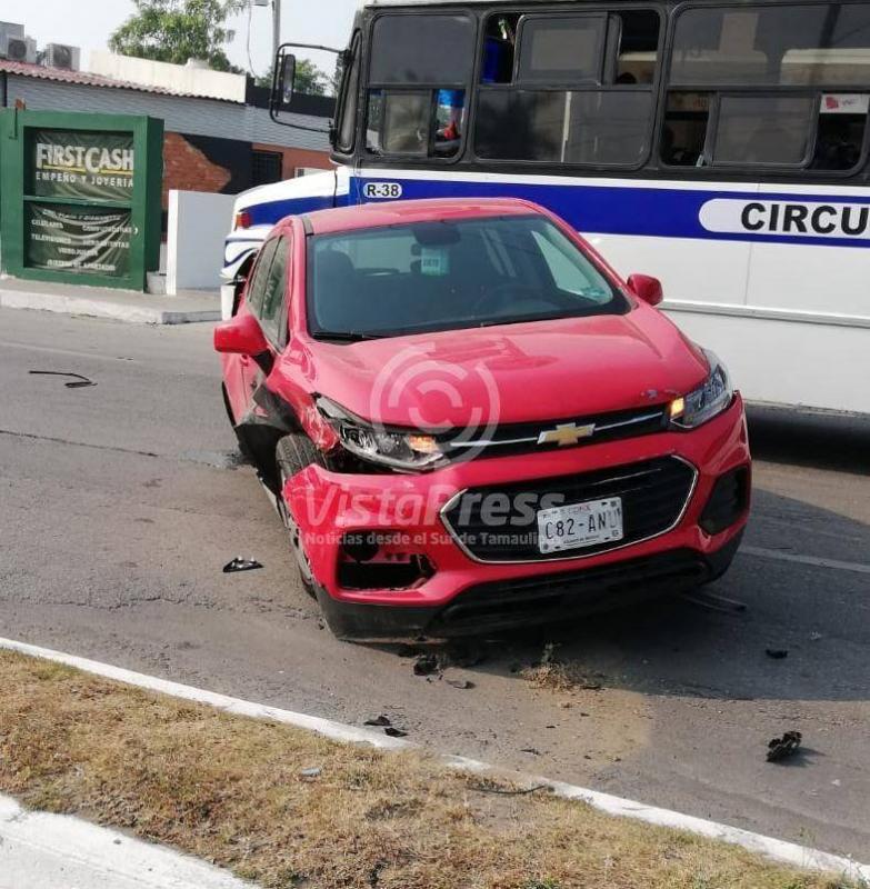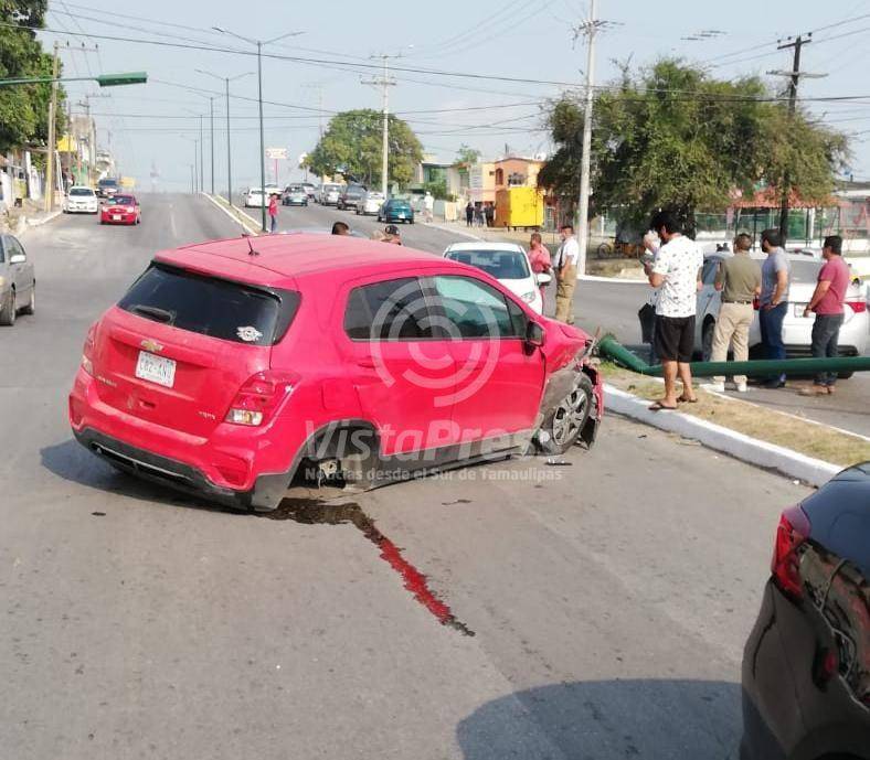 Tampico, Tam. Fuerte choque múltiple se registró la tarde de este viernes en la zona norte de Tampico en donde participan tres vehículos y resulta un poste de alumbrado público derrumbado.