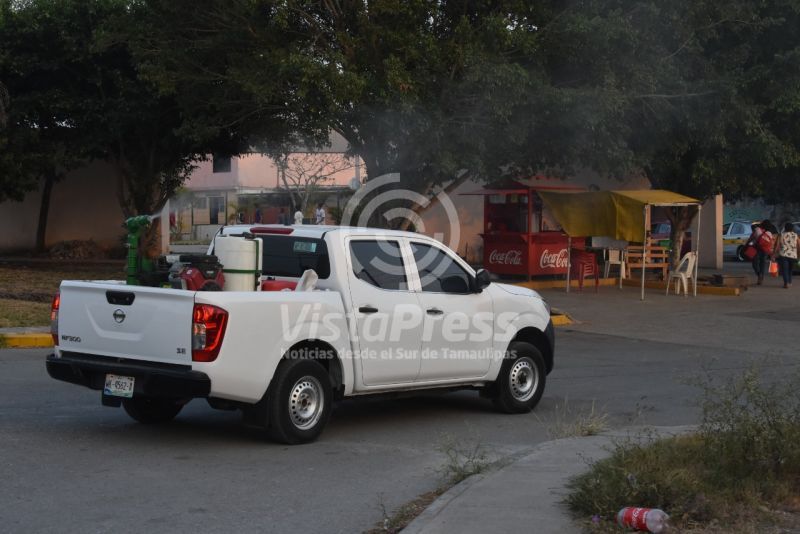 Complementando las acciones de descacharrización y abatización que de manera conjunta efectúan el Gobierno Municipal y la Secretaría de Salud de Tamaulipas, se llevan a cabo labores de fumigación en colonias y fraccionamientos de Altamira, conforme a lo establecido en los esquemas de prevención de enfermedades transmitidas por vector.