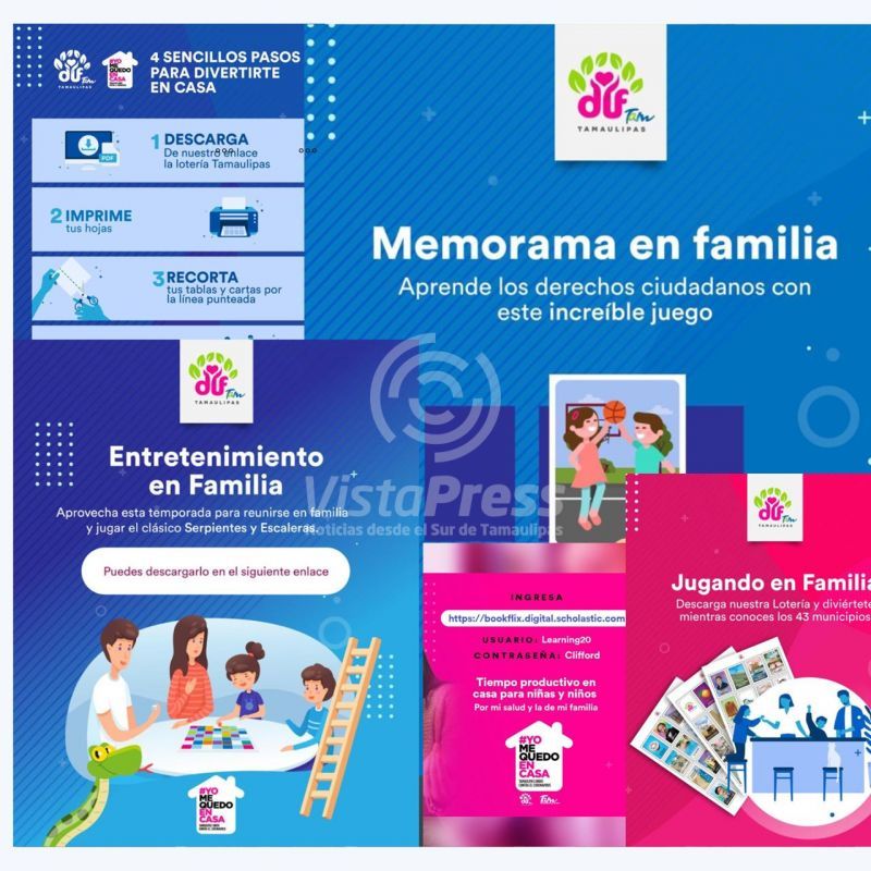 Ciudad Victoria, Tamaulipas.- Para contribuir a la sana convivencia dentro del hogar durante el aislamiento social a causa de la contingencia sanitaria derivado del coronavirus, el DIF Tamaulipas, que preside Mariana Gómez de García Cabeza de Vaca, ofrece gratuitamente una serie de juegos interactivos que, impulsa el desarrollo cognitivo durante ésta época en que permanecer en casa es vital para conservar nuestra salud.