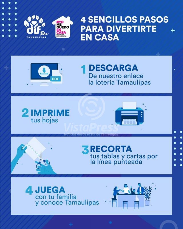 Mandalas, memoramas, serpientes y escaleras, así como la lotería Tamaulipas, son algunas de las actividades que las familias de la entidad pueden disfrutar dentro de su hogar al descargarlas de manera gratuita directamente de la página del Sistema DIF Tamaulipas en la dirección electrónica www.diftamaulipas.gob.mx.