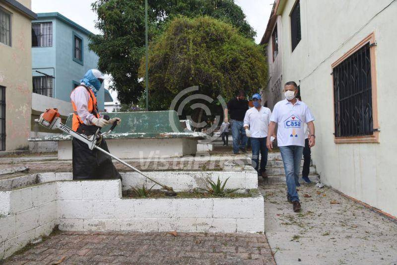 «El día de hoy nos encontramos en la colonia Puertas Coloradas, que es uno de los fraccionamientos que más áreas verdes y espacios recreativos tiene en el municipio; por lo que nos hemos dado a la tarea de limpiar y de mantener en óptimas condiciones estos sitios, aprovechando que por motivos de la contingencia, permanecen cerrados», dijo.