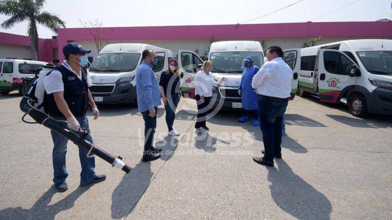 Con la finalidad de evitar contagios del COVID 19, el Gobierno Municipal de Altamira, en coordinación con la Secretaría de Salud del Estado y la Comisión Estatal para la Protección Contra Riesgos Sanitarios (COEPRIS), realizó labores de sanitización en unidades móviles del Centro de Rehabilitación Integral de Altamira (CRI), contando con la supervisión de la alcaldesa Alma Laura Amparán Cruz.