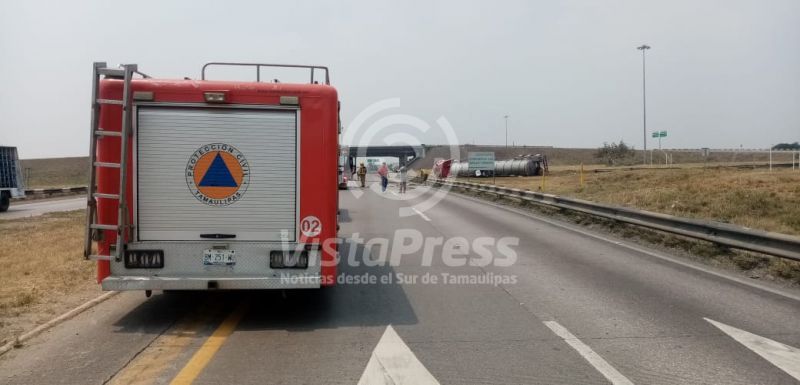 Altamira, Tam.- La movilización de los cuerpos de emergencias se registró al mediodía de este sábado, luego de que una pipa cargada con diésel volcara y derramara el combustible.