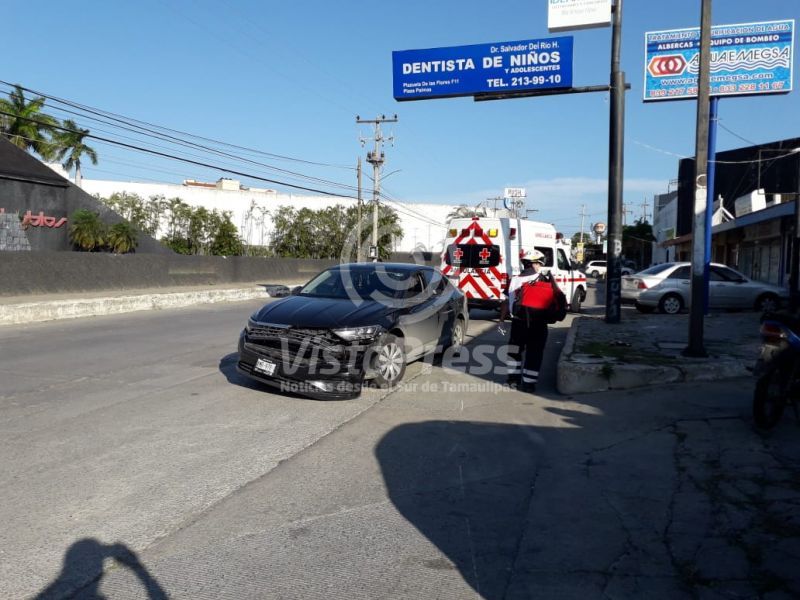 En el percance participaron un automóvil Volkswagen Jetta, color negro, placas de Tamaulipas y una motocicleta Italika AT 110, color azul con negro, de la empresa “Soy Juan”.