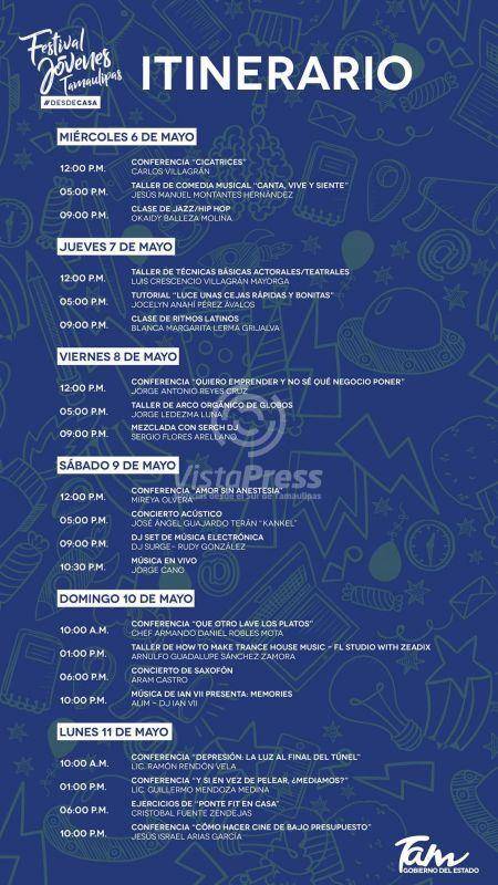 En esta versión virtual del festival, la programación se esta transmitiendo por Facebook Live directo de la página oficial de Jóvenes Tamaulipas.