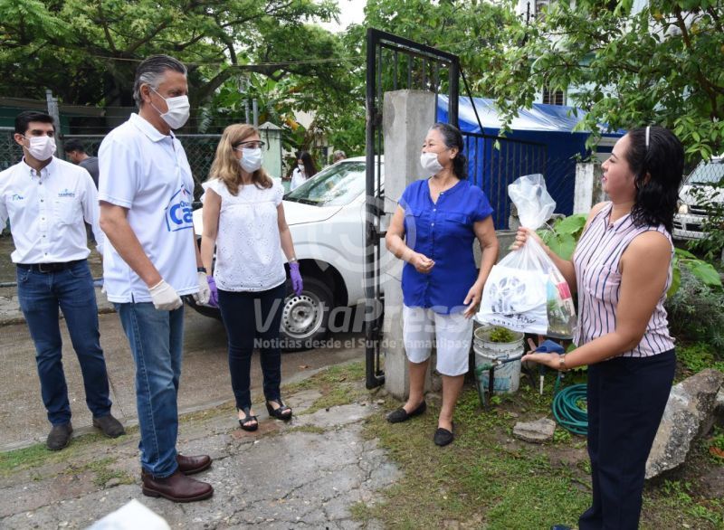 Atendiendo las necesidades de las familias más vulnerables de Tampico, este miércoles el Presidente Municipal, Chucho Nader y su esposa, Aída Féres de Nader Presidenta del Sistema DIF, entregaron despensas casa por casa a los vecinos de la colonia Fray Andrés de Olmos con el fin de mitigar la situación económica derivada de la pandemia por el Covid 19.